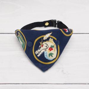 首輪用バンダナ 首輪にワンタッチでつけられるバンダナ ★カラフルな龍のバンダナ(紺)★