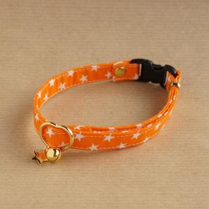 猫用 首輪 ハンドメイド セーフティバックル使用 3サイズから選べる ★ 星柄の首輪(オレンジ)★
