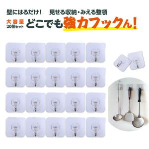 どこでも強力フックん 魔法 フック 20個セット 穴あけ 不要 吊るす 収納 屋内 屋外 でも 利用 エコ 最大重量 4kg 送料無料