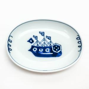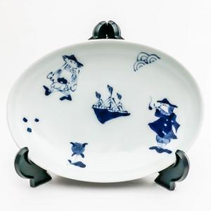有田焼 青花 子供食器 異人づくし 小判銘々皿 S-32-331 小判皿 楕円小皿 手描き