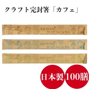 割り箸 100膳 九州紙工 クラフト紙完封箸「カフェ」ブラウン ブルー グリーン アスペン元禄 楊枝入 カフェ おしゃれ 飲食店 テイクアウト