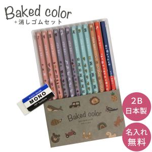 名入れ 鉛筆 ベイクドカラー鉛筆 2B 赤鉛筆 赤青鉛筆 (消しゴムセット) 卒園 記念品 オリジナル えんぴつ 木目 ウッド