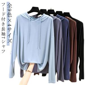 長袖 薄手 レディース おしゃれ 大きいサイズ フード付きパーカー フード付きtシャツ フード付き カットソー uvカットパーカー パーカー トップス