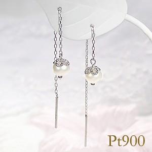プラチナアメリカンピアス Pt900 淡水パール 両耳 1ペア ぶら下がり 一粒 PT900 シンプル アメリカン 揺れる ピヤス ぴあす