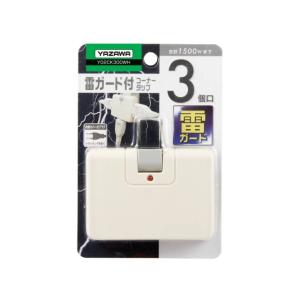 電源タップ 雷ガードタップ ヤザワ 絶縁カバー 雷ガード 安全シャッター付 集中スイッチ コンセント3口 雷サージ・耐トラ付省エネタップ3個口 白 Y02FUBKS310WH