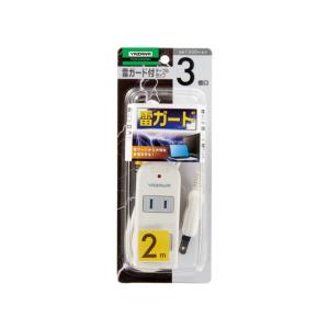 電源タップ 雷ガードタップ ヤザワ コード長2m コンセント3口 180度動くスイングプラグ 絶縁カバー 雷ガード 雷サージ付延長コードタップ3個口2m 白 Y02KS302WH