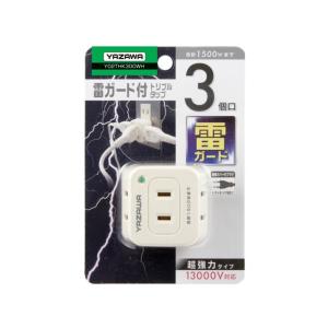 電源タップ 雷ガードタップ ヤザワ コンセント3口 13,000V対応雷サージフィルター搭載 絶縁カバー 雷ガード 雷サージ付トリプルタップ13000V 白 Y02THK300WH
