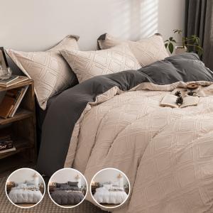掛布団カバーシーツセット 表面のタフトで幾何学模様 布団カバー ベッドカバーセット 掛け布団カバー ボックスカバー 枕カバー チェック柄 グレー 綿100%