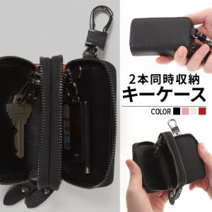 2本同時収納キーケース メンズ レディース 鍵 スマートキー カード ダブルファスナー 送料無料