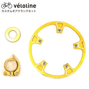 Veloline(ベロライン) ギアクランクセット 軽量ゴールドアルマイト加工 チェーンリング シートクランプ ヘッドパーツ 3点セット