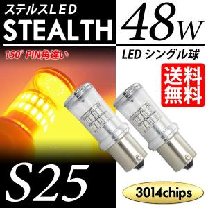 S25 LED バルブ ウインカー / ウィンカー アンバー / 黄 150度 ピン角違い ステルス / クローム仕様 シングル球 3014チップ 48W