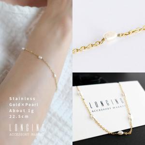 ブレスレット ステンレス レディース ゴールド 淡水パール 18Kコーティング 金属アレルギー対応 Stainless