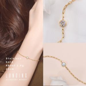 ブレスレット ステンレス レディース ゴールド ジルコニア 18Kコーティング 金属アレルギー対応 Stainless