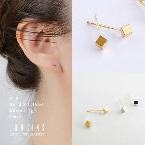 ピアス K18 18金 レディース 日本製 シンプル 小さい 小さめ 極小 キューブ ゴールド シルバー 金属アレルギー対応