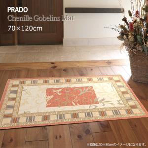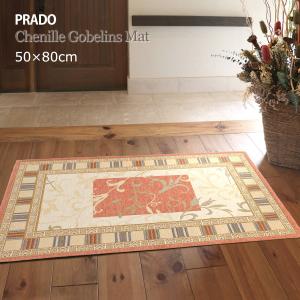玄関マット 屋内 50×80cm (プラドOR) 洗える アンティーク オレンジ シェニール ゴブラン織り マット 滑り止め加工