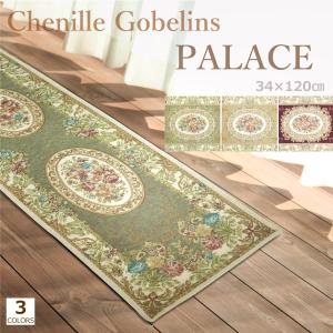 玄関マット 屋内 34×120cm (パレス) 上がり框 洗える アンティーク グリーン ベージュ ワイン シェニール ゴブラン織り マット 滑り止め加工