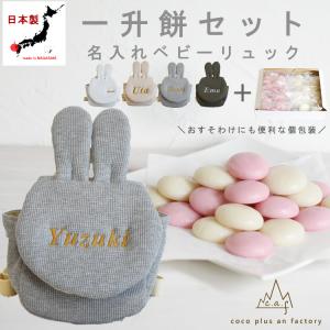 <お急ぎ便対応>一升餅セット ベビーリュック 名入れ 一升餅リュック うさ耳 ワッフル 1歳 誕生日 プレゼント 赤ちゃん 出産祝い ギフト お祝い 小分け 0026set