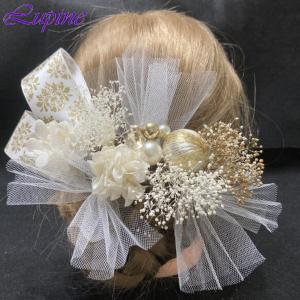 髪飾り 結婚式 卒業式 成人式 着物 振袖 色打掛 ゆり ホワイトゴールド リボン チュール 水引 ha95