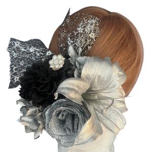 【アウトレット】髪飾り ダリア 白 ゆり 金 バラ あじさい かすみ タッセル パール 水引 金箔 金 結婚式 成人式 卒業式 hu62
