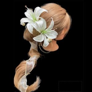 Lupine 百合 ホワイト 1本 豪華 髪飾り和装 白無垢 hset_lilyw1