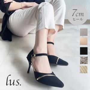 lus.22020 ポインテッドトゥセパレートパンプス 美脚7.0cmヒール ストラップで安定感抜群!ふかふかクッションで足の負担軽減 走れるパンプス lustre
