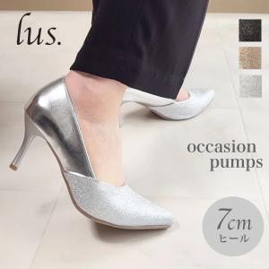lus.23076 ラメコンビポインテッドトゥヒールパンプス 7.0cmヒール オケージョン パーティー 結婚式 入学式