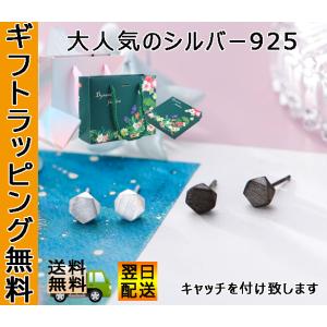 シンプル オシャレピアス アクセサリー シルバー925 金属アレルギー対応 小さめ 立体五角形 ブラック スタッドピアス 両耳用 6mm 送料無料