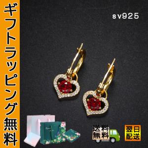 レッドハートピアス 18K金仕上げ キュービックジルコニア レディース 人気 ギフト シルバー925 アクセサリー ジュエリー 金属アレルギー対応 送料無料