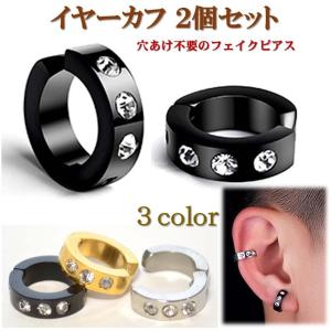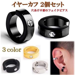 イヤーカフ 2個セット ノンホール ピアス イヤリング ジルコニア CZ メンズ レディース アクセサリー ステンレス フープ 金属アレルギー ac126