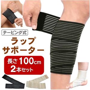 ラップ サポーター 長さ100cm テーピング マジックテープ式 伸縮 スポーツ 包帯 プロテクター 固定 足首 膝 腕 腰 肩 手首 ブラック ベージュ sp009