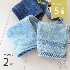 デニムハンカチ 2枚組 綿100% サイズ 25×25cm 送料無料 タオルハンカチ ハンドタオル デニム コットン 無地 メンズ 男性 2枚セット