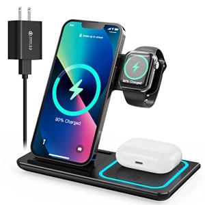 HOUOA ワイヤレス充電器 3in1 急速充電15W/10W/7.5W 同時にiPhone/Apple Watch/Airpodsに対応 iP