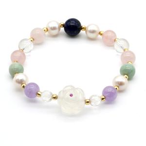 クリスタルローズ 天然石ブレスレット レディース 水晶の薔薇 ルビー 淡水真珠 翡翠 アメジスト ラピスラズリ 日本製 内周16cm ギフト