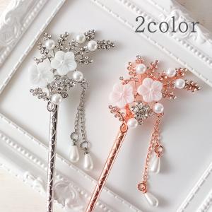 かんざし 留袖 レディース 一本挿し 髪飾り パール ピンク 白 花 梅 結婚式 和装 訪問着 着物