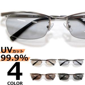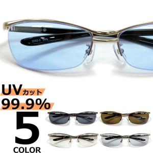 サングラス メンズ レディース UVカット 伊達メガネ ツーポイント 縁なし リムレス 色付き 薄い色 カラーレンズ スクエア スクウェア 四角
