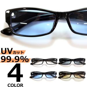 サングラス メンズ レディース UVカット 伊達メガネ スクウェア スクエア 色付き 薄い色 カラーレンズ