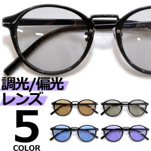 サングラス 偏光 調光 メンズ レディース UVカット 伊達メガネ ボストン 丸メガネ 色付き 薄い色 カラーレンズ