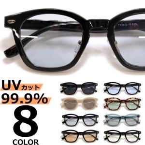 サングラス メンズ レディース UVカット 伊達メガネ ウェリントン 色付き 薄い色 カラーレンズ