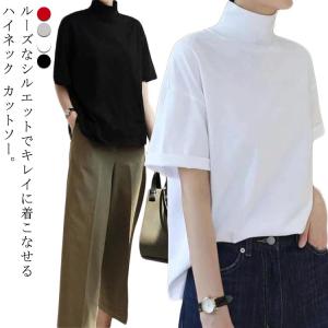 シャツ ハイネック タートル 半袖 オフィス 夏 涼しい カジュアル 春 綿 秋 トップス 半袖 レディース ドロップショルダー 接触冷感 Tシャツ