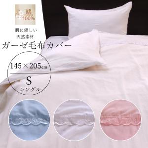 毛布カバー ガーゼ シングルサイズ 145×205cm 綿100% 布団カバー兼用 レース衿付き 無地 丸洗いOK