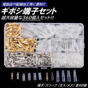 大容量 360個 ギボシ 端子 丸型 セット スリーブ 絶縁 電工 圧着 端子 車 バイク 配線 DIY 加工 オス メス 配線接続 サイズ