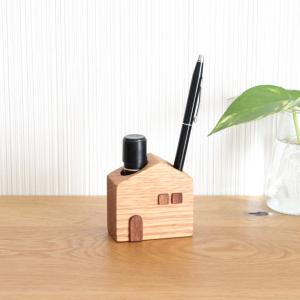 かわいい木のお家 印鑑・ペンスタンド【オーク】おしゃれ ナチュラル 木製 ペン立て 玄関・デスク・ギフトに人気