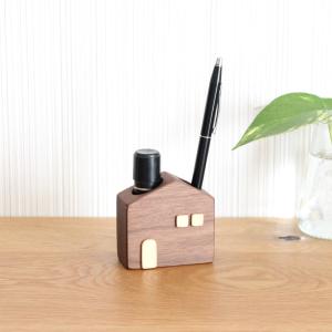 かわいい木のお家 印鑑・ペンスタンド (ウォールナット) おしゃれ ナチュラル 木製 ペン立て 玄関・デスク・ギフトに人気