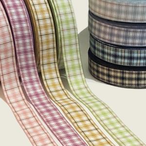 【1m 25mm幅】全8色 チェック柄 ファブリックリボン