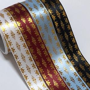 【25mm幅 1m】全4色 レース柄 ダマスク系 サテンリボン ゴールド 箔押し