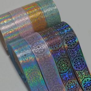 【25mm幅 1m】エキゾチック模様 サテンリボン オーロラ シルバー 箔押し