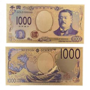 新紙幣 1000円札 2枚セット グッズ アイテム ゴールドレプリカ 浪裏 千円 黄金 ダミー 金運アップ 開運 風水 お金1万円 おもしろ ネタ