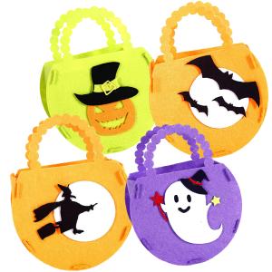 【組み替えが楽しめる】ハロウィン 手提げ袋 ミニバッグ 飾り トートバッグ 手芸キット お菓子袋 ギフトバッグ 4枚セット フェルト キャンディバッグ