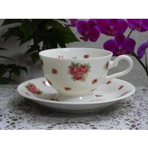 カップ&ソーサー・イングリッシュローズ ピンクの薔薇・ティーカップ&ソーサー・アイボリーボディー