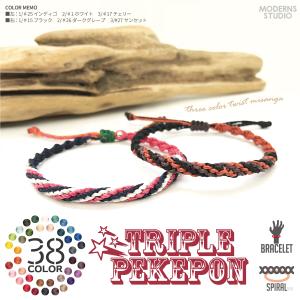 トリプル ペケポン ミサンガ ブレスレット 全38色 レディース つけっぱなし オーダー ねじり編み おしゃれ アウトドア